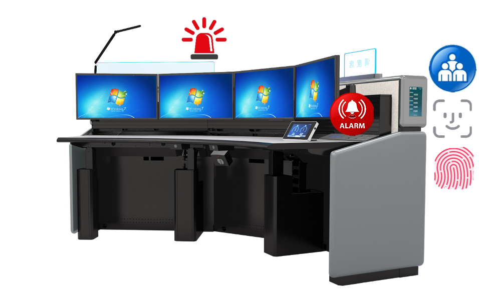 瑞佰特智慧控制臺集成了先進的生物識別管控技術,構建了一套智能權限管理系統。該系統能夠自動識別使用者的身份信息,登陸者的崗位狀態將實時同步至席位的智能信息發布屏上。智慧控制臺系統將自動調整至該用戶預設的個人偏好設置,涵蓋桌面高度、顯示器布局、環境配置等多方面。同時,瑞佰特智慧控制臺具備強大的告警信息處理能力,支持接入多個業務系統,一旦接收到告警,控制臺會立即依據告警信息的重要等級,觸發不同的聲光告警機制,確保操作人員能夠迅速察覺并響應,有效提升了應急處理的效率與準確性。
