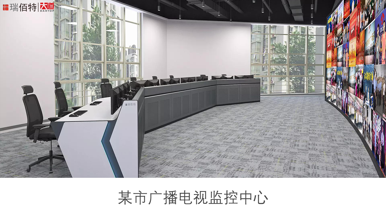 市廣電監控中心作為廣播電視節目安全播出的核心保障,肩負實時監測信號、預警故障及迅速應急處理的重任。鑒于其工作強度大、責任重,配置的瑞佰特控制臺以其卓越的人機工學設計和內置的智慧音響等智能化模塊,為工作人員營造了一個既健康高效又充滿智慧的作業環境,有力確保了監控中心的高效穩定運作。
