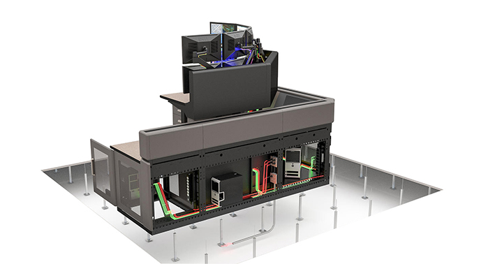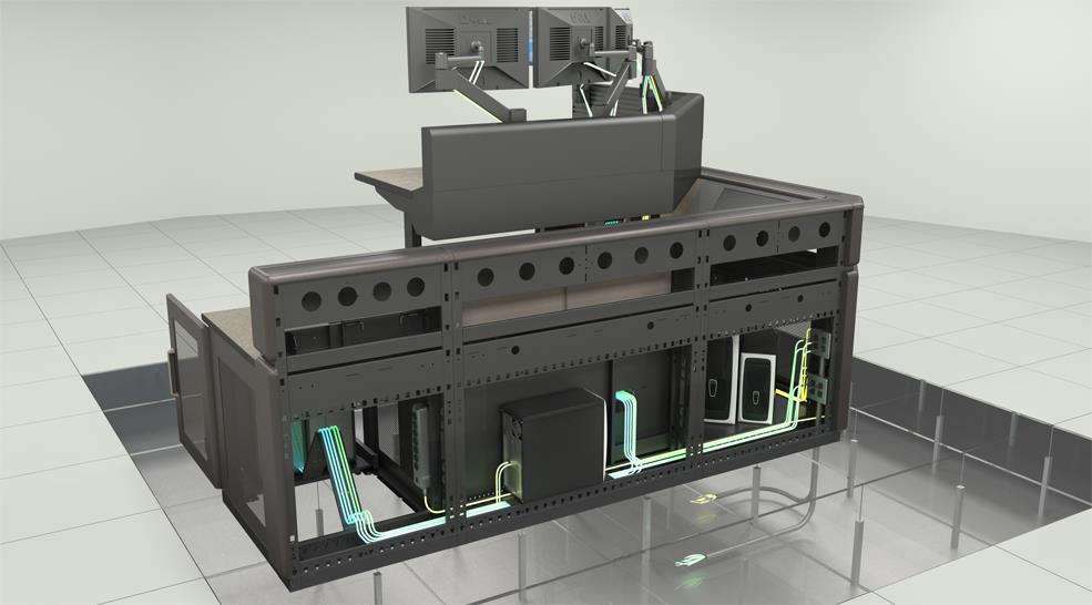 瑞佰特控制臺具有水平三層、垂直兩層的強弱電分離走線設計,同時對放置在控制臺內的不同設備均提供專業的設備承載管理方案。瑞佰特控制臺具有自循環無風扇散熱系統,散熱高效且無噪音和安全隱患。