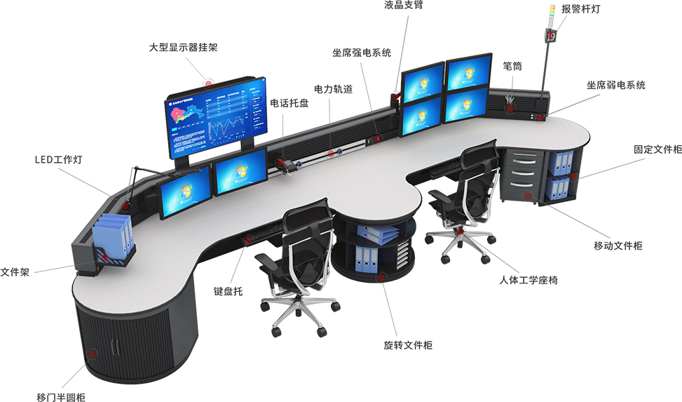 瑞佰特控制臺采用全模塊設計,可以方便的搭建出適合用戶使用環境的造型布局,同時具有百變造型功能,只需調整少量模塊,即可實現造型變化和席位數量增減的需求。